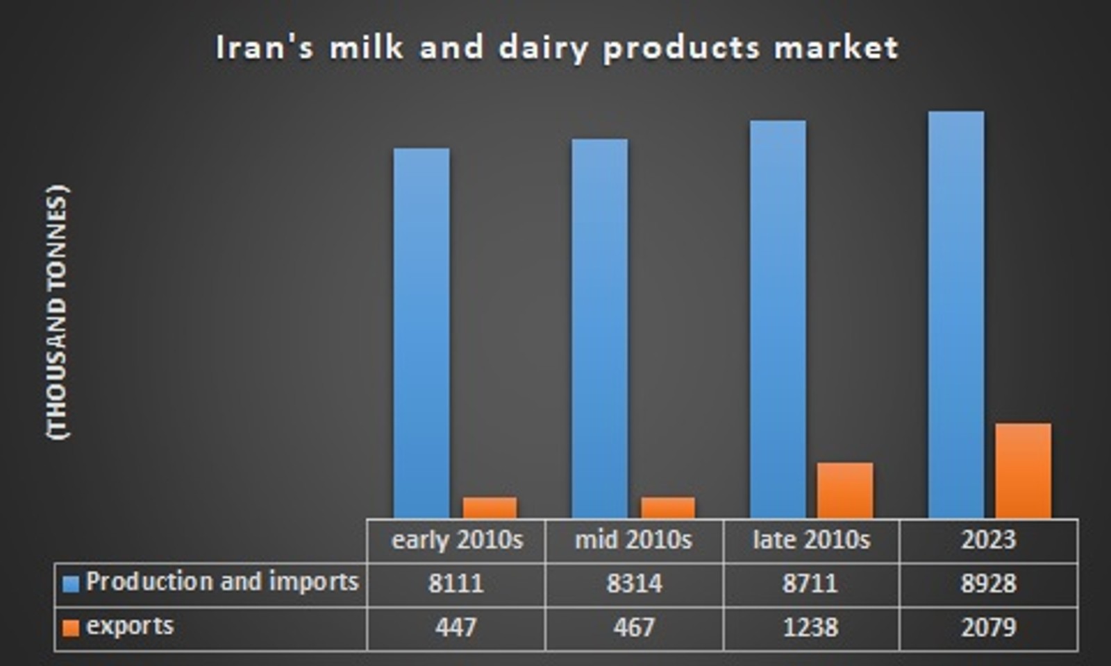 Turkey produces over 21 million tons of milk and dairy products annually, yet exports less than 0.5 million tons. In contrast, Iran, with only a third of Turkey's production, exports four times more than its western neighbor.