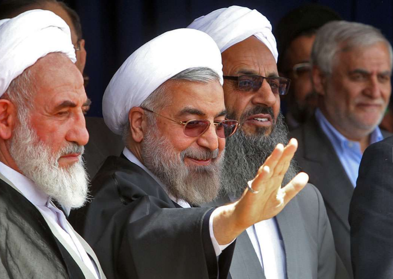 Former president Hassan Rouhani standing next to Mowlavi Abdolhamid