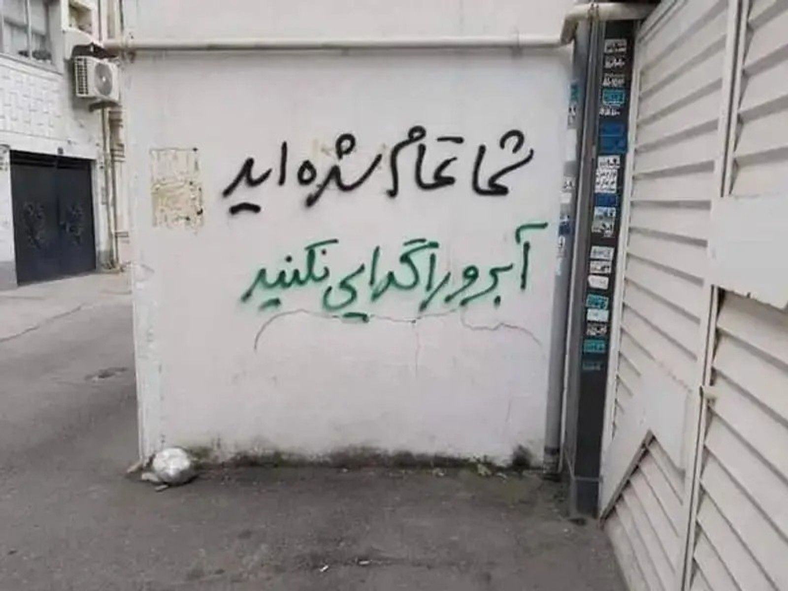 An anti-government graffiti in Tehran says, "You are finished - Stop begging for your honor."