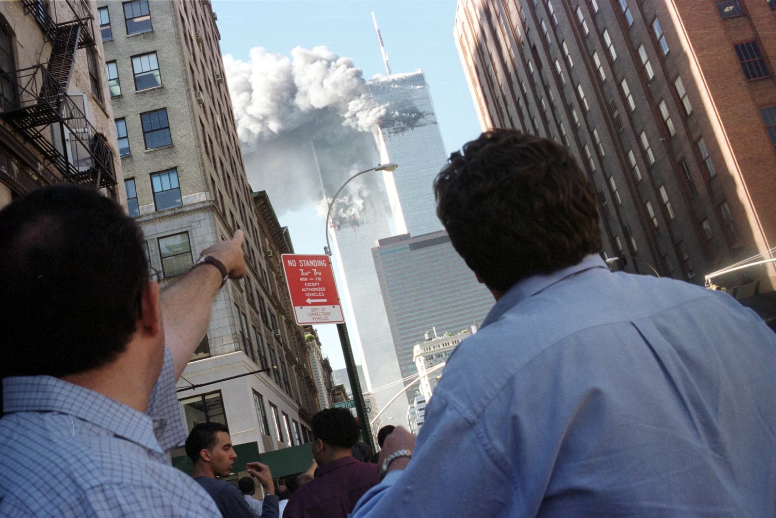 Pedestrians react to the World Trade Center collapse, September 11, 2001.