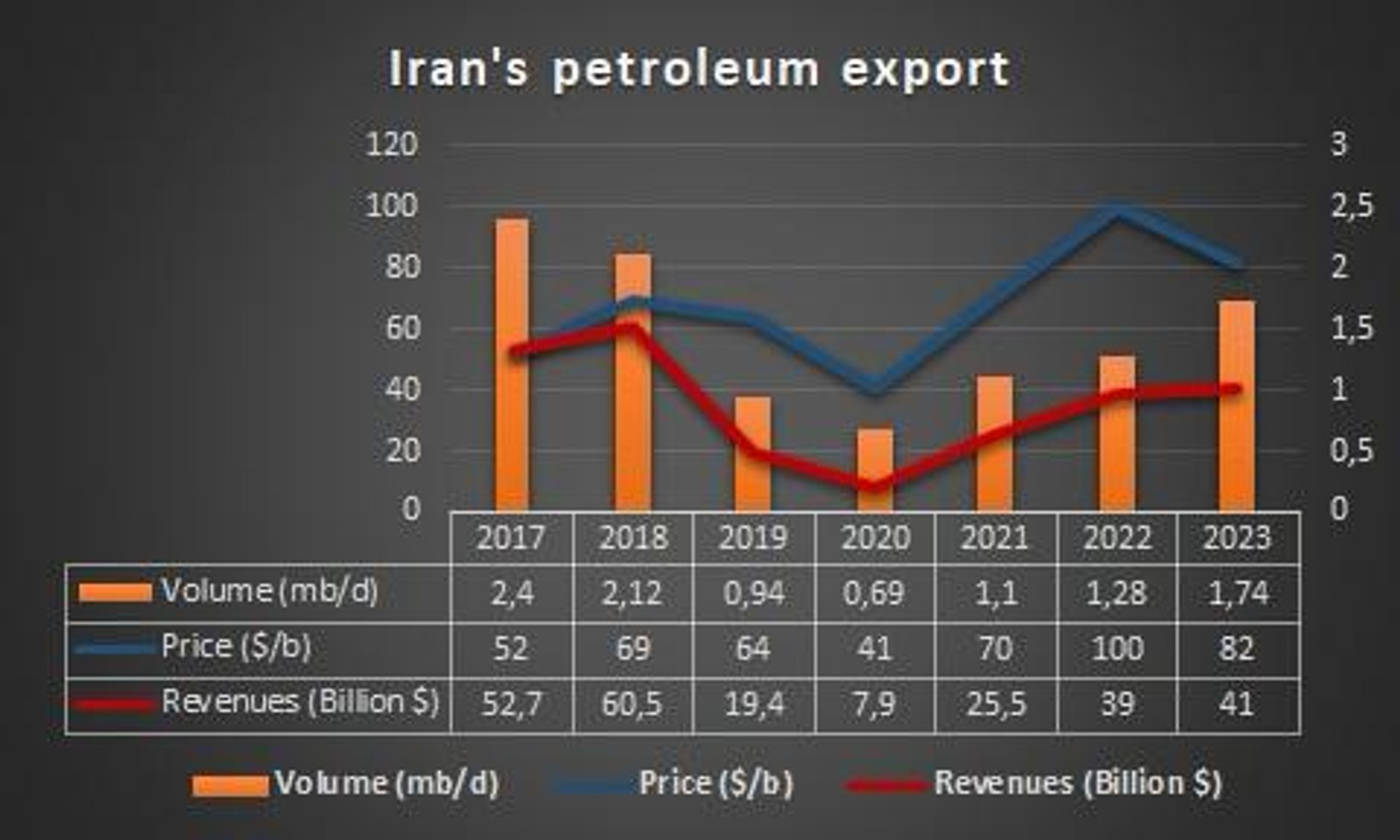 This figure, before US sanctions imposed in 2018, was around 2.5 million barrels per day.