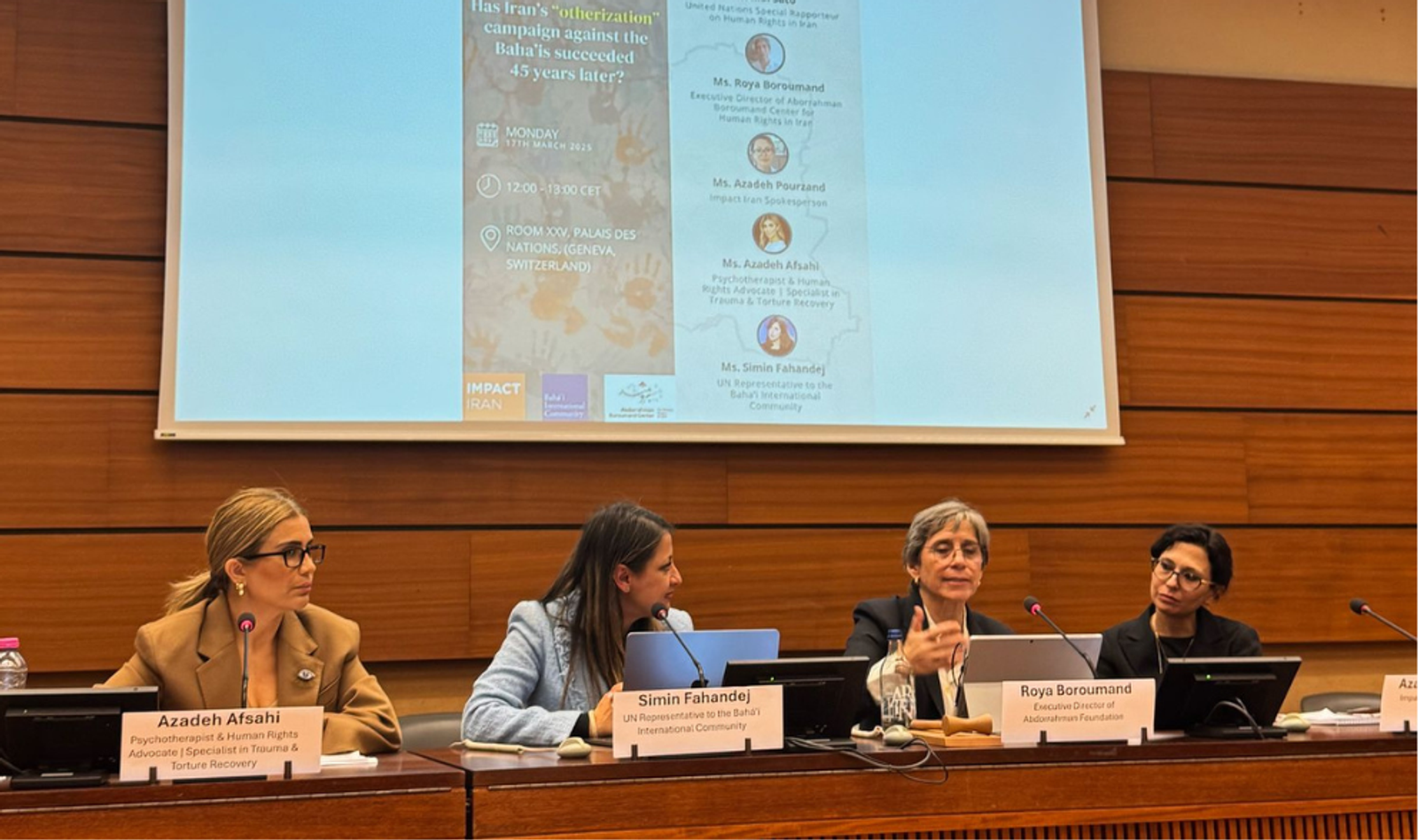 A panel hosted by the Baha’i International Community, the Abdorrahman Boroumand Center, and the Impact Iran coalition examined the systematic targeting of Baha’is. The event featured Mai Sato, the UN Special Rapporteur on Human Rights in Iran, alongside prominent rights advocates.