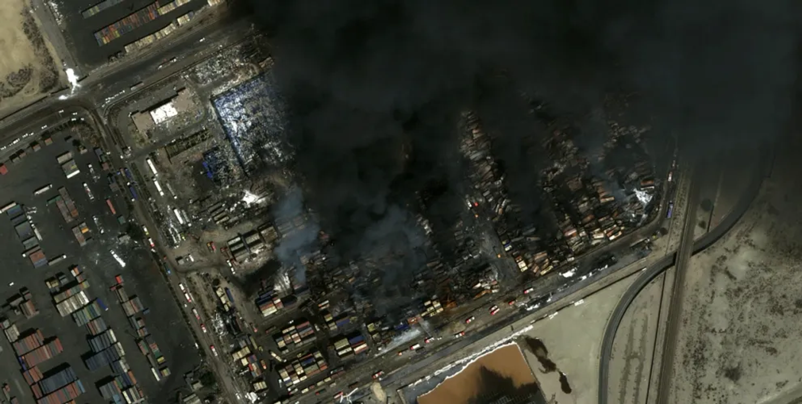 The satellite images reveal that the Sina yard, the blast's epicenter which could hold between 12,000 and 20,000 twenty-foot containers, has been completely destroyed.