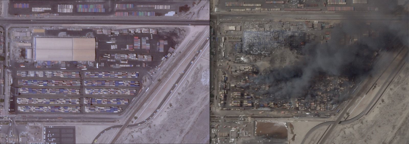 Satellite images taken before and after the explosion at Iran’s Shahid Rajaei port show the blast’s impact on the area, with smoke rising over the site days after the incident.