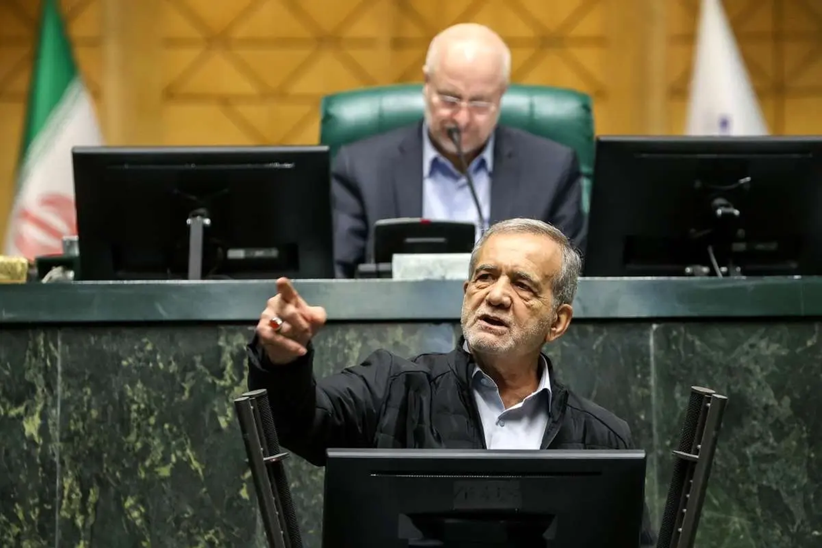 Iranian President Masoud Pezeshkian accused the United States of "global plunder and hypocrisy" during a speech to parliament on Wednesday, responding to remarks by Donald Trump in Saudi Arabia.