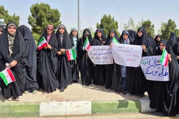 Members of the Basij, a paramilitary wing loyal to Iran’s leadership, staged a protest Thursday outside the Fordow nuclear facility, chanting slogans against the United States.