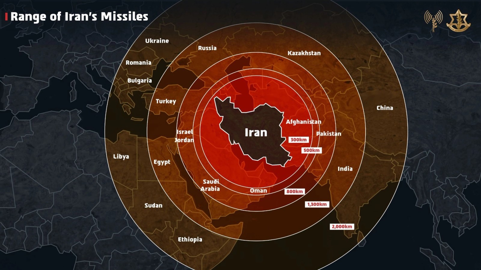 Israel’s military described Iran as a “global threat” and released a photo depicting Iran at the center surrounded by circles representing the expanding reach of Tehran’s influence.