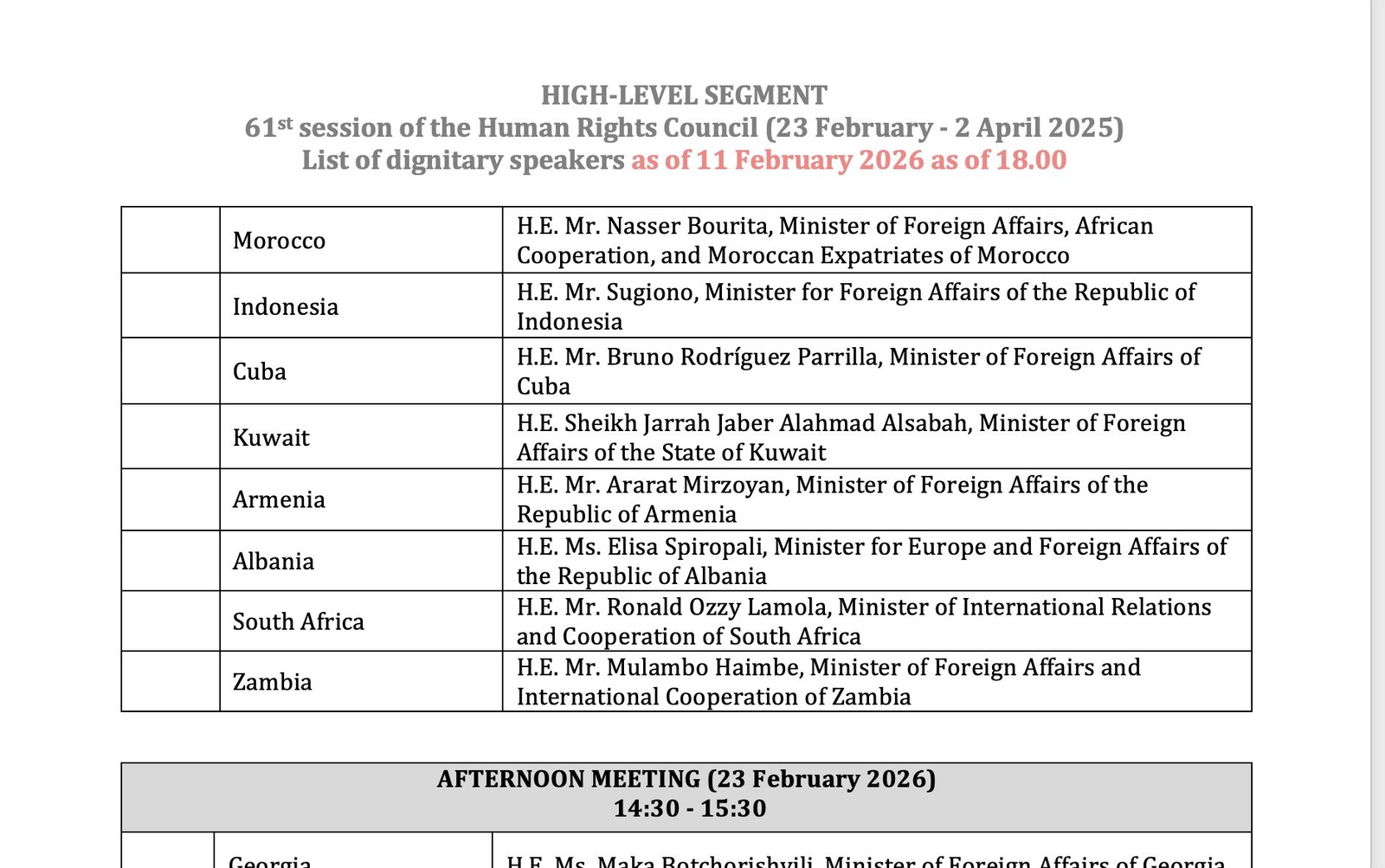 Iranian Foreign Minister Abbas Araghchi’s name has been removed from the updated list of speakers at the UN Human Rights Council session on February 23.