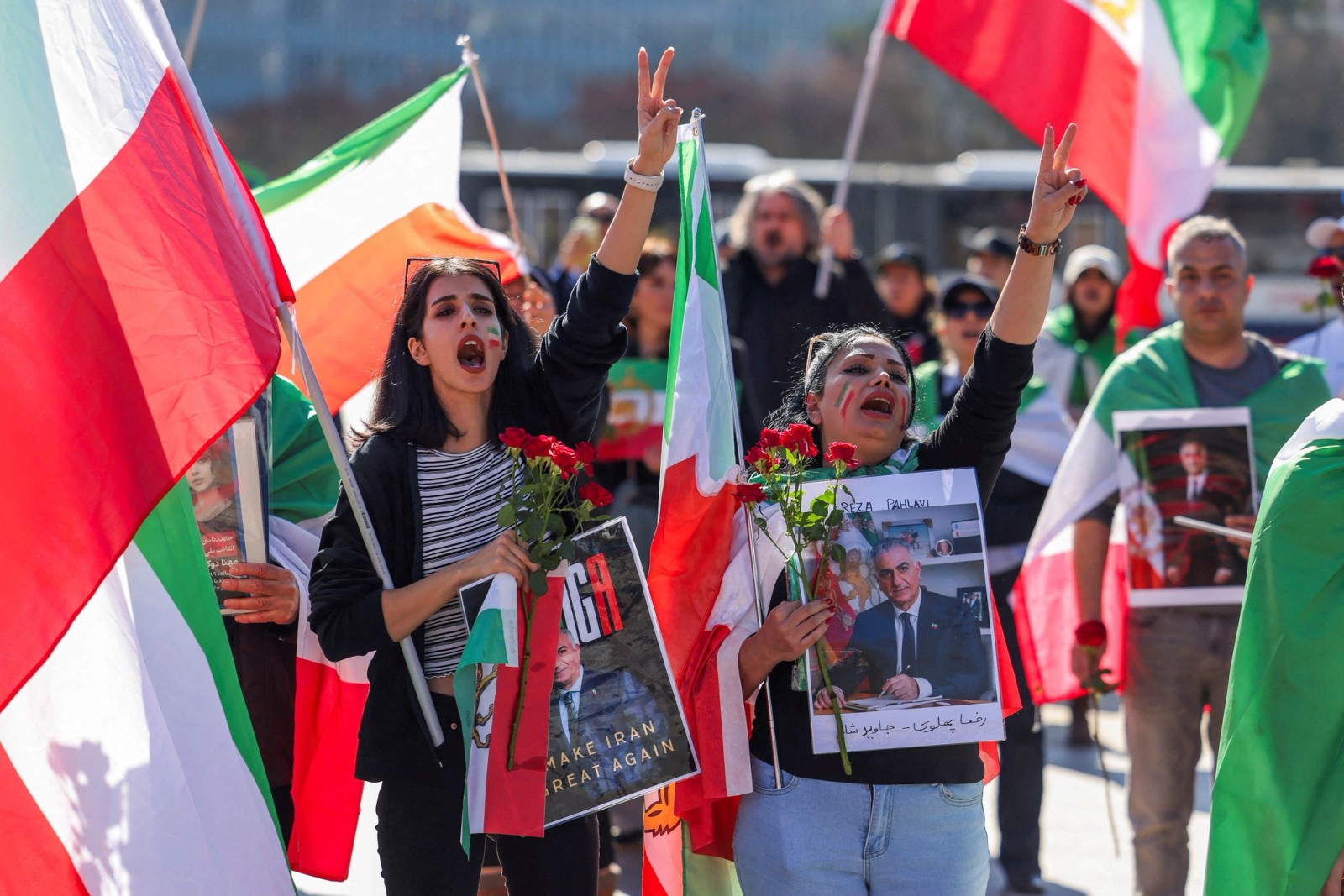 Iranian protesters demonstrated against the Islamic Republic outside the United Nations Office in Geneva on Thursday as a new round of US-Iran talks took place in the Swiss city, waving pre-Islamic Republic Lion and Sun flags and holding pictures of exiled Prince Reza Pahlavi.