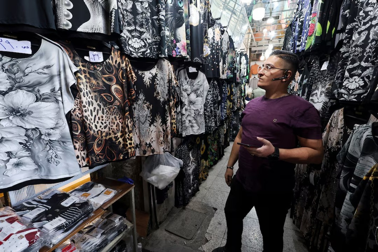 A shopkeeper stands in his clothing store at the Grand Bazaar, amid the US-Israeli conflict with Iran, in Tehran, Iran, March 18, 2026.