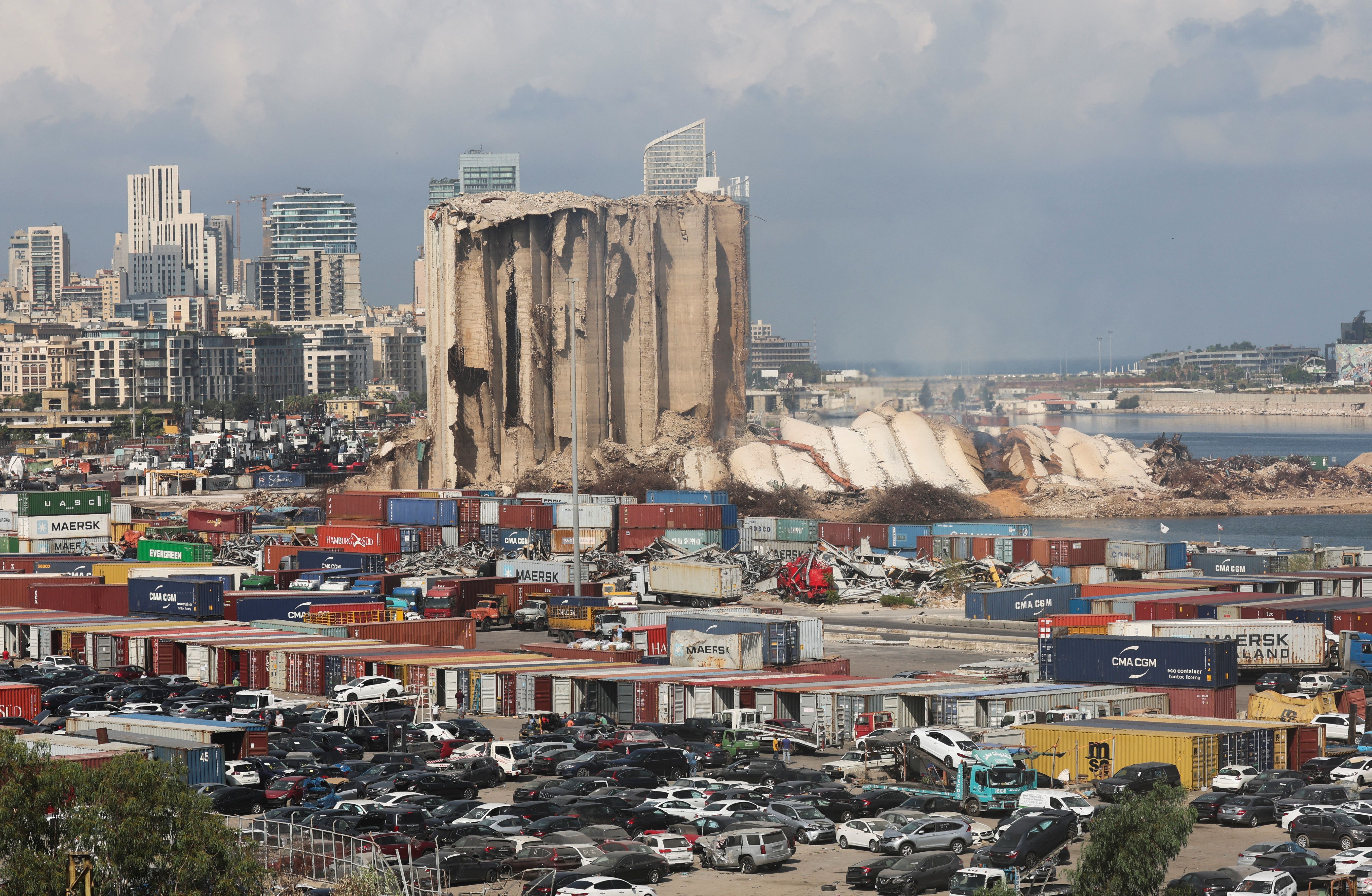 کل بخش شمالی سیلوهای غلات که بخشی از آنها بر اثر انفجار ویرانگر بندر بیروت در سال ۲۰۲۰ از بین رفته بود، فروریخت.