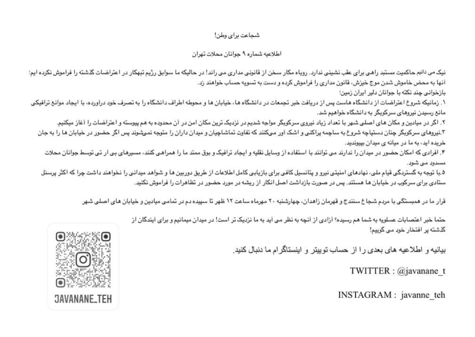 پیشتر و در روز چهارم مهر نیز شورای سازماندهی اعتراضات کارگران پیمانی نفت با انتشار بیانیهای هشدار داده بود اگر جمهوری اسلامی به سرکوب مرگبار خیزش سراسری پایان ندهد، اعلام اعتصاب خواهد کرد.