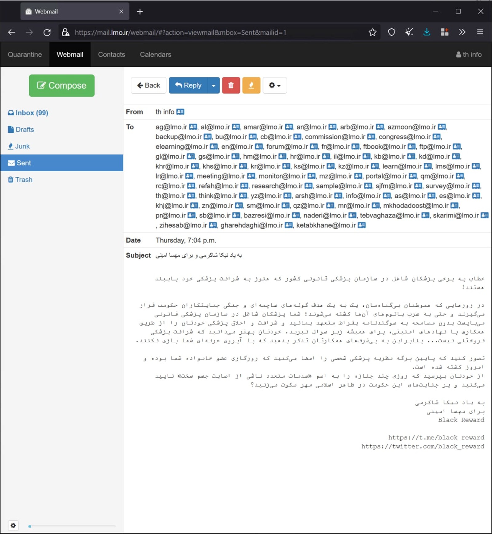این فعال بلوچ ادامه داد: «لباس عزایی که تن بلوچستان کردهاید، لباس رزم ما شده است، که تا روز اجرای عدالت آن را از تن بیرون نخواهیم آورد. شک نکنید ما تا روز دادخواهی آرام نخواهیم گرفت. فردای آزادی روز دادخواهی که فرا برسد، ما چون شما نخواهیم بود و چون شما حکم نخواهیم کرد.»