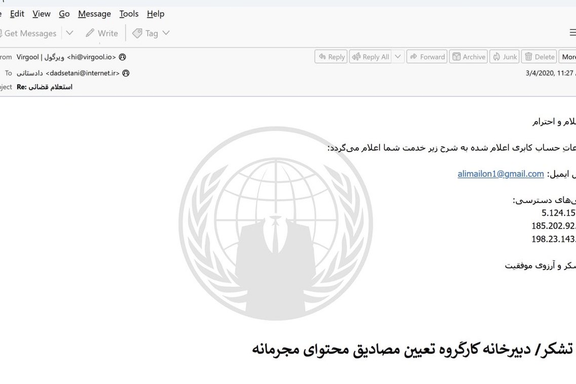 گروه هکری Anonymous Opiran با انتشار صدها فایل داخلی «کارگروه تعیین مصادیق محتوای مجرمانه»، از هک سرورهای ایمیل این نهاد حکومتی خبر داد.