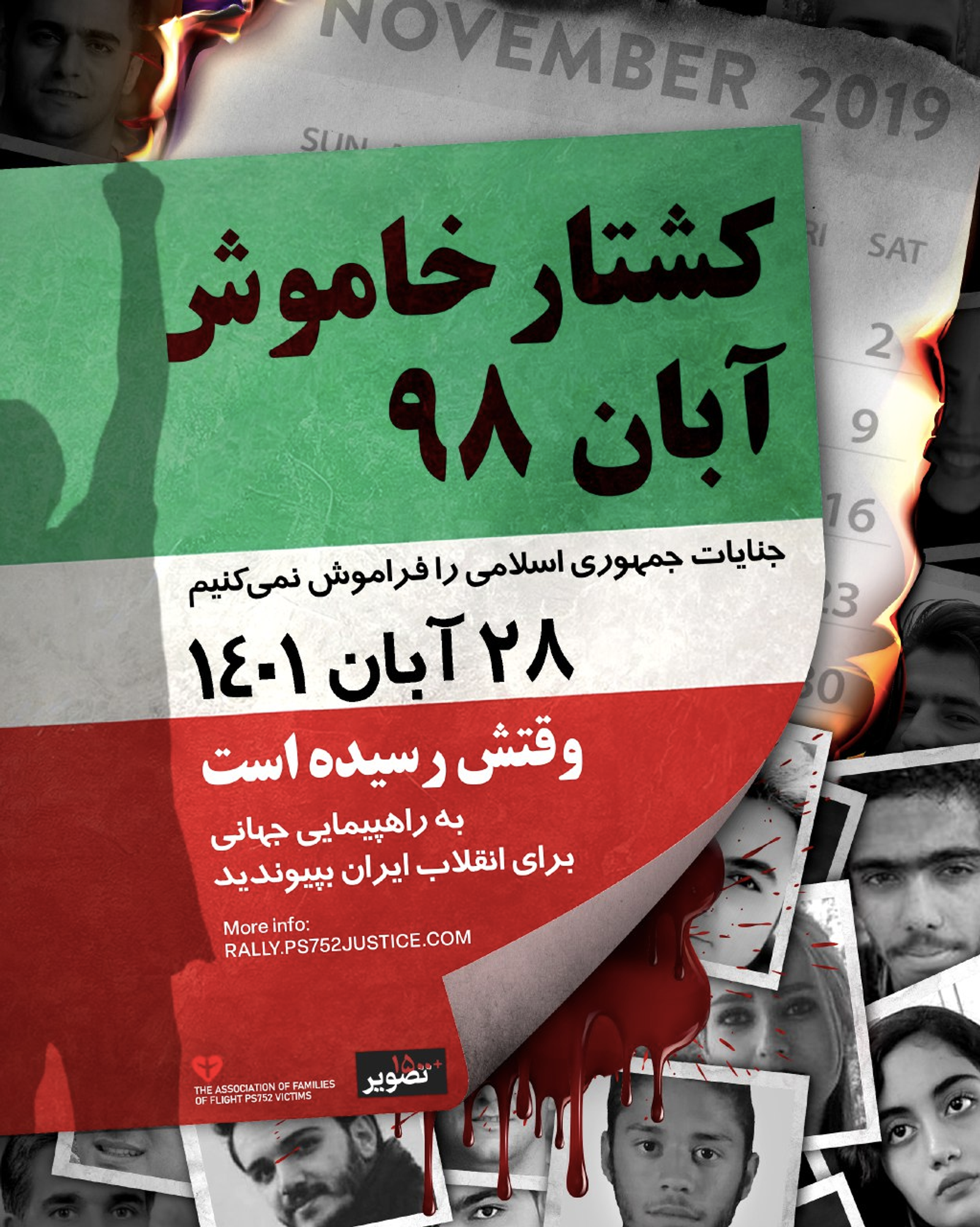 پوستر این فراخوان نیز با جمله «کشتار خاموش آبان ۹۸» و «جنایات جمهوری اسلامی را فراموش نمیکنیم» منتشر شده است.