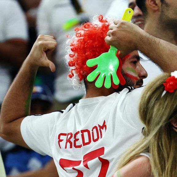 تصویری از یک هوادار ایرانی فوتبال با تیشرتی که پشت آن کلمه «آزادی» نوشته شده است، برای تماشای دیدار تیمهای ملی فوتبال ایران و آمریکا وارد ورزشگاه دوحه شده است
