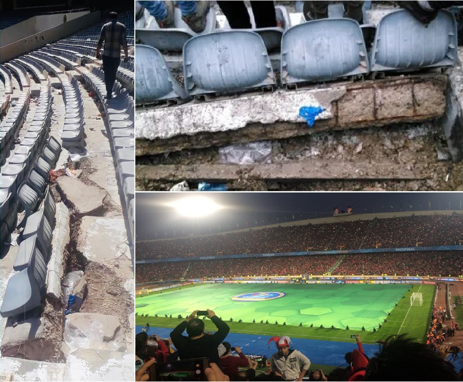 سکوهایی که احتمالا روی سر هواداران آوار می‌شوند