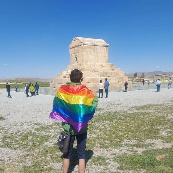 تصاویر رسیده به ایران‌اینترنشنال شهروندی را نشان می‌دهد که مقابل آرامگاه کوروش در پاسارگاد پرچم رنگین‌کمان را در حمایت از جامعه کوییر به نمایش گذاشته است.