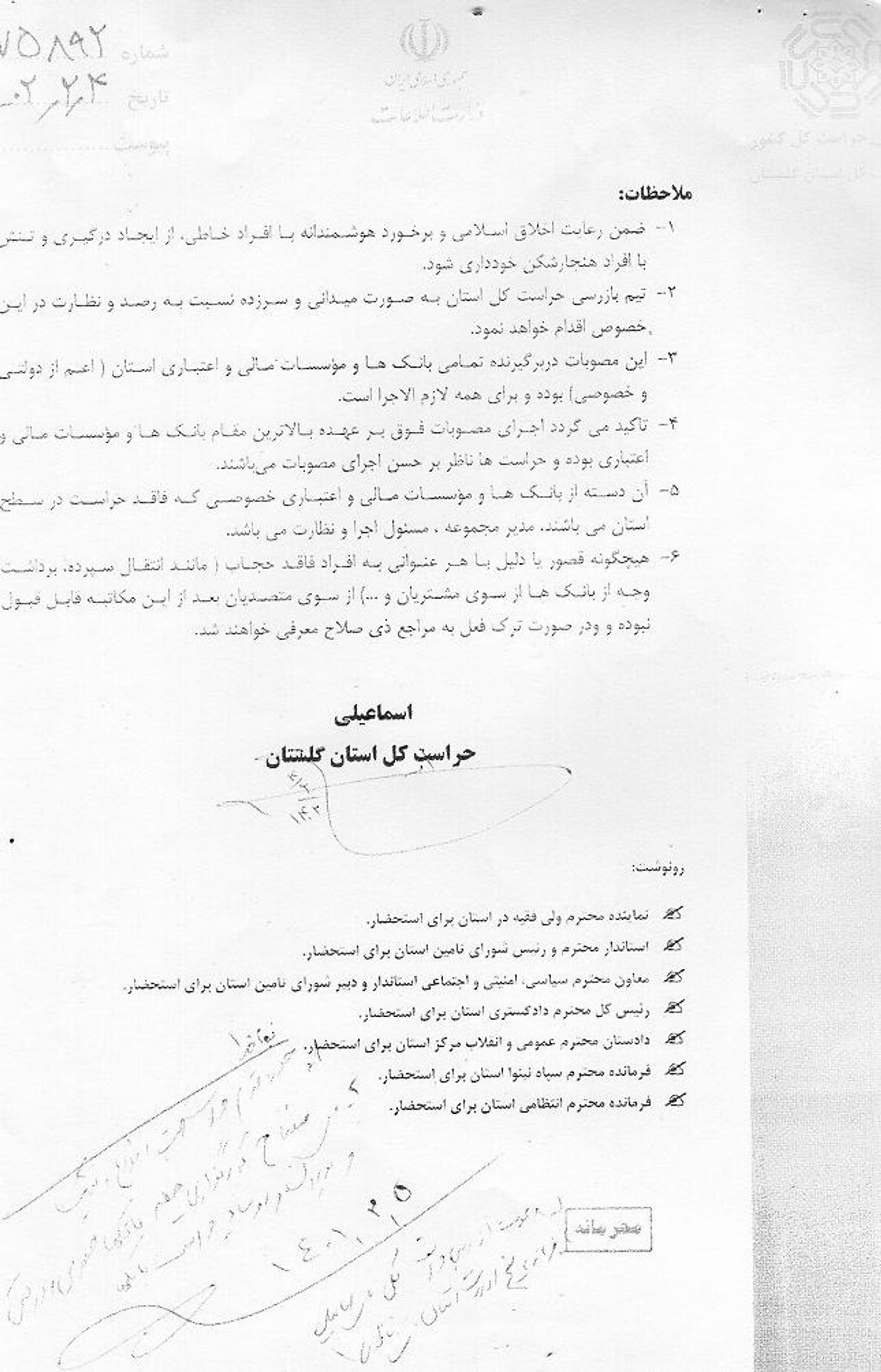 این اسناد شامل یک نامه «محرمانه» از سوی فیروز یازرلو، دبیر کمیسیون هماهنگی بانک‌های استان گلستان، به تاریخ یازدهم اردیبهشت و خطاب به مدیران بانک‌های مختلف در این استان است.