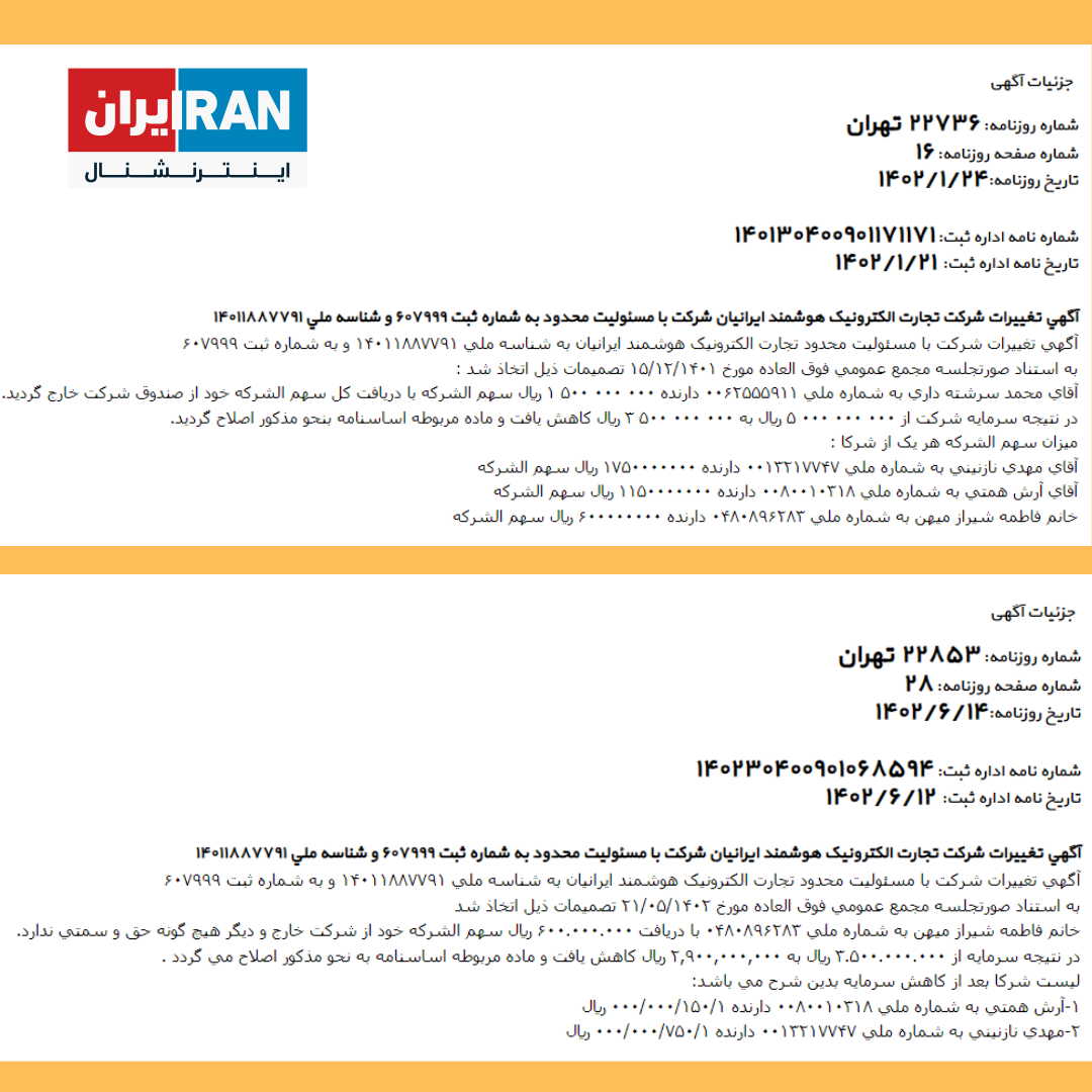 از سوی دیگر، در آگهیهای روزنامه رسمی کشور فعالیت این شرکت در زمینه واردات، صادرات و خدمات پس از فروش تمامی کالاهای مجاز بازرگانی اعم از انواع لوازم الکترونیکی ذکر شده است؛ بدون هیچ شفافیت خاصی.