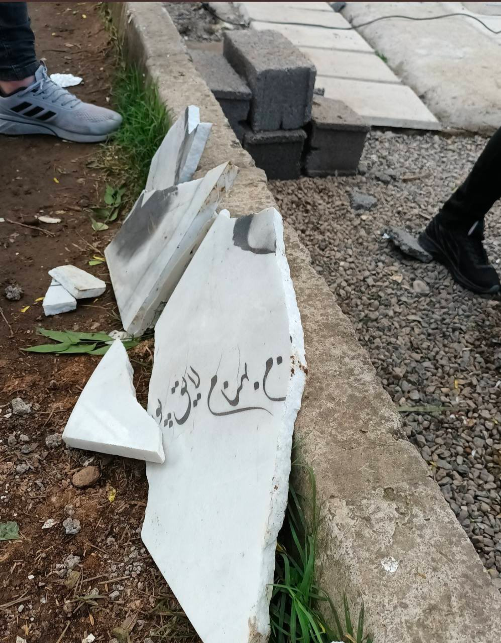 خط انداختن و شکستن تصویر معترضان و آتش زدن قبر