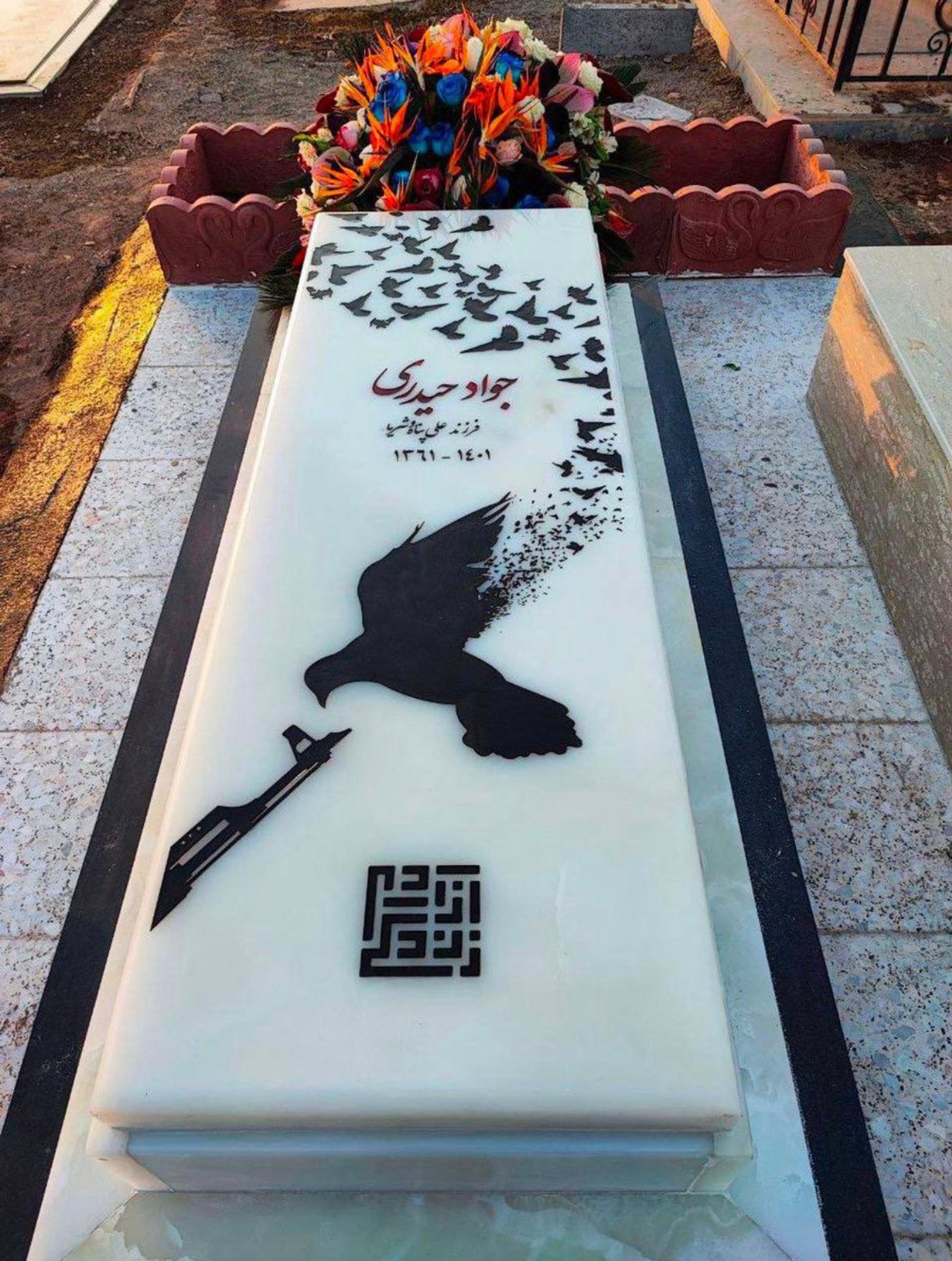 تصویر مشترک سنگ مزار تعدادی از معترضان، تفنگی است که به کبوتری شلیک میکند و صدها کبوتر از بالهای او به پرواز در میآیند و در کنار آن زن، زندگی، آزادی حک شده است:از جواد حیدری، مهندس ۴۰ساله کشته شده در قزوین گرفته تا عرفان رضایی نوایی، معترض ۲۱ساله کشته شده در آمل و ابولفضل آدینهزاده نوجوان ۱۷ساله کشته شده در مشهد و همچنین برخی دیگر از کشته شدگان.