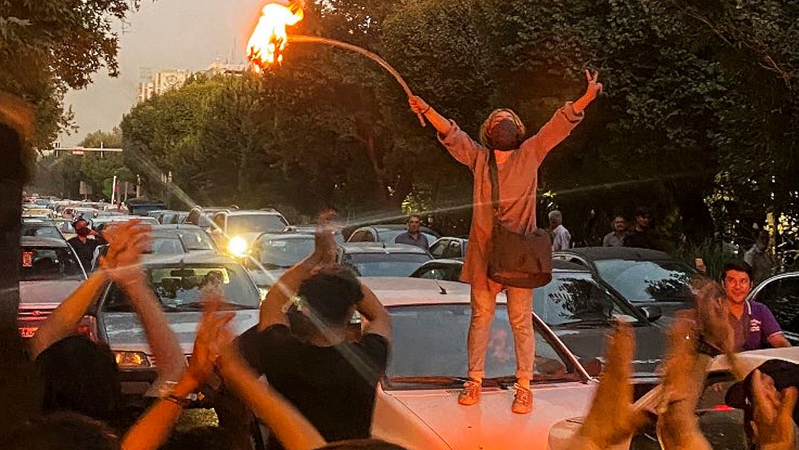 او می‌گوید زنان ایرانی را دیده که حجاب خود را درآوردند و در حالی که شعار «زن، زندگی، آزادی» سر دادند، آن را سوزاندند یا در هوا تاب دادند.