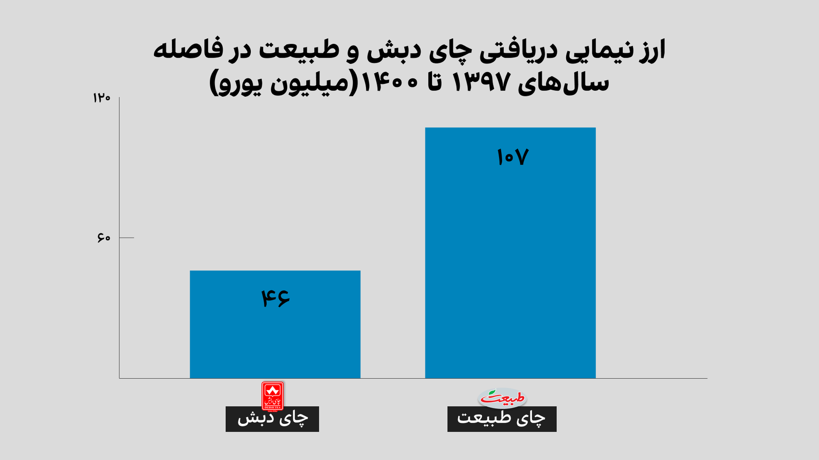 این ماجرا درباره ارز چهار هزار و ۲۰۰ تومانی هم صادق است. گروه چای طبیعت طبق لیست بانک مرکزی طی سال‌های ۱۳۹۷ تا ۱۴۰۰ مبالغی به مراتب بالاتر از چای دبش و مجموع عرضه‌کنندگان دیگر چای، ارز چهار هزار و ۲۰۰ تومانی دریافت کرده است.