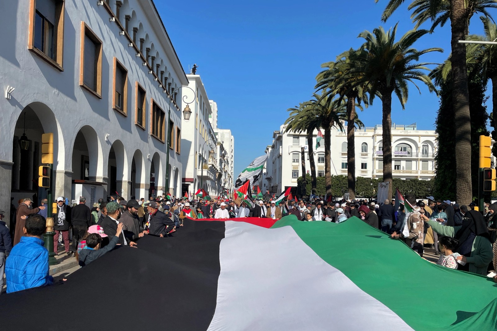 به گزارش خبرگزاری رویترز، این تظاهرات که روز یکشنبه سوم آذر برگزار شد، یکی از بزرگترین تجمعات حامیان فلسطین در مراکش از زمان آغاز مناقشه کنونی خاورمیانه بوده است.