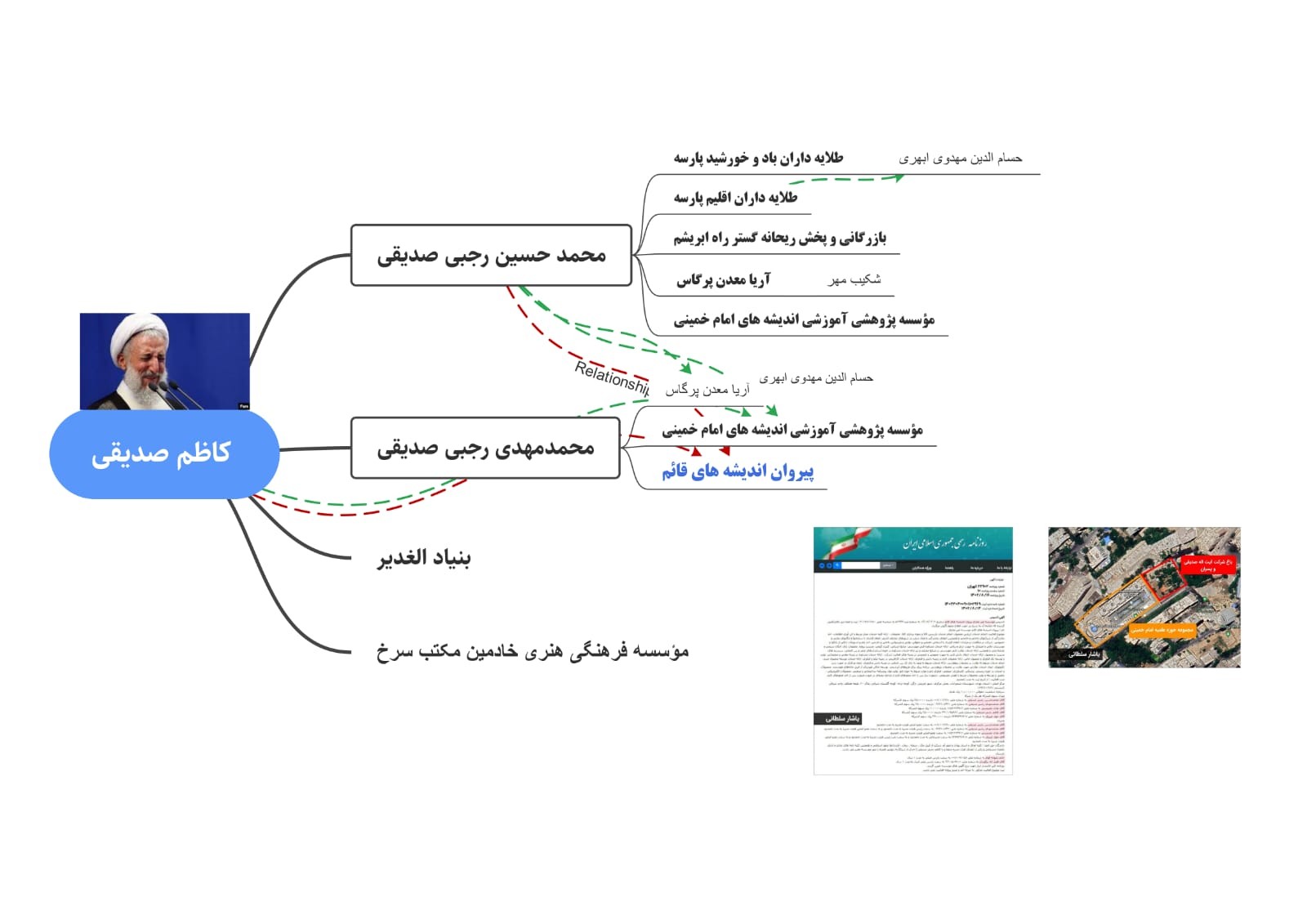 بر اساس این خبر مشخص می‌شود که آبان امسال، شرکتی به نام «موسسه غیر تجاری پیروان اندیشه‌های قائم» ثبت شده که یک ماه پس از ثبت، اسناد مالکیت این باغ به نام این شرکت می‌شود. شرکتی که به جز کاظم صدیقی و دو فرزند او «محمد حسین» و «محمد مهدی»، «رضوانه قوام»، عروس کاظم صدیقی هم به عنوان بازرس آن معرفی شده است.
