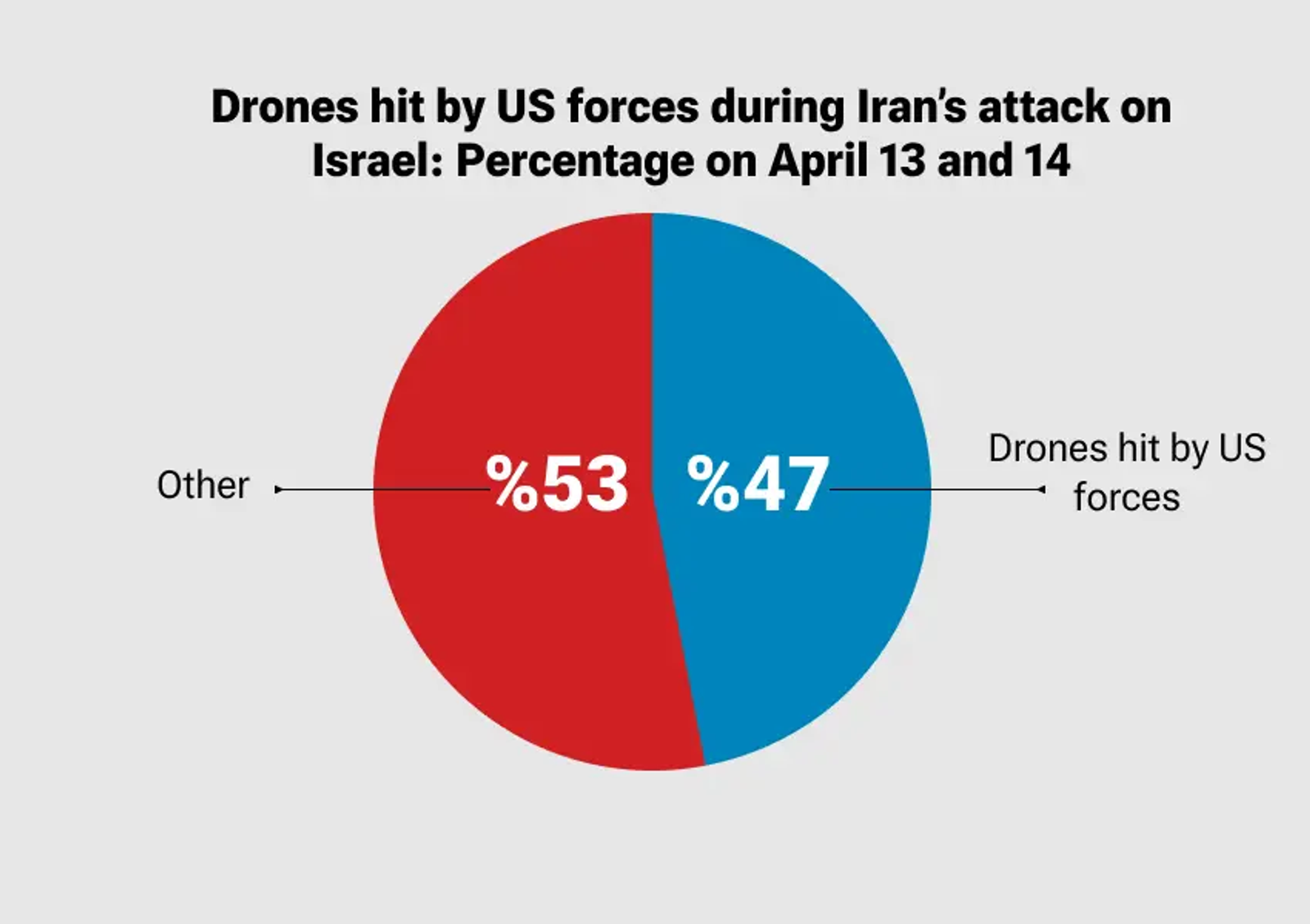 فرماندهی مرکزی آمریکا (سنتکام)، روز دوشنبه ۲۷ فروردین اعلام کرد نیروهای ایالات متحده بیش از ۸۰ پهپاد تهاجمی یکطرفه را سرنگون کردند که برابر با ۴۷ درصد از مجموع پهپادهای شلیک شده از سوی جمهوری اسلامی بود.