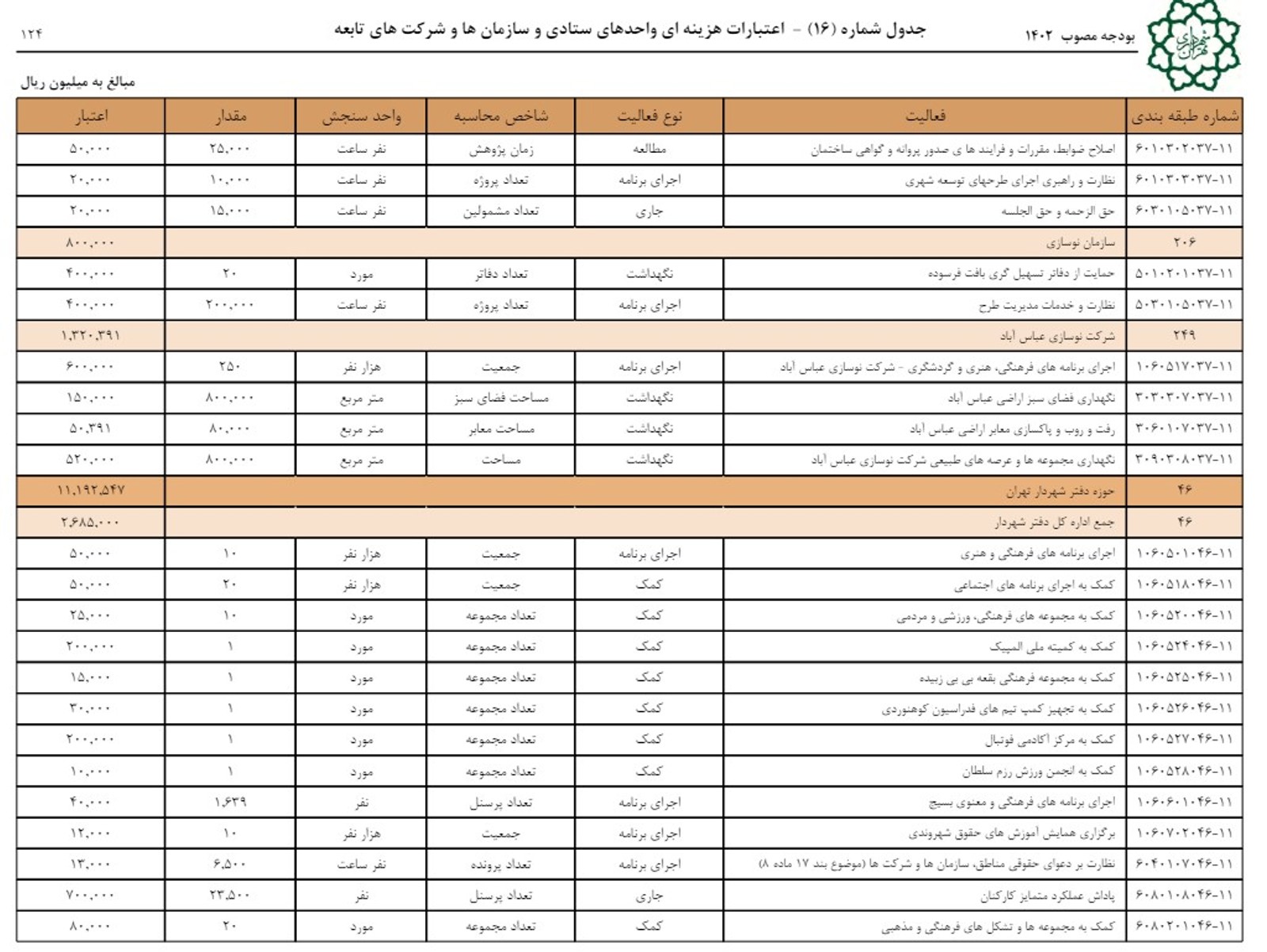 ردیف ۴۶ از جدول شماره ۱۶ اعتبارات هزینه‌ای واحدهای ستادی و سازمان‌ها و شرکت‌های تابعه شهرداری تهران به بودجه دفتر شهردار تهران اختصاص دارد که در لایحه بودجه ۱۴۰۲، زاکانی برای آن یک‌هزار و ۳۲۸ میلیارد تومان درخواست کرده بود و شورای شهر با یک‌هزار و ۱۹۲ میلیارد تومان آن موافقت کرده است.