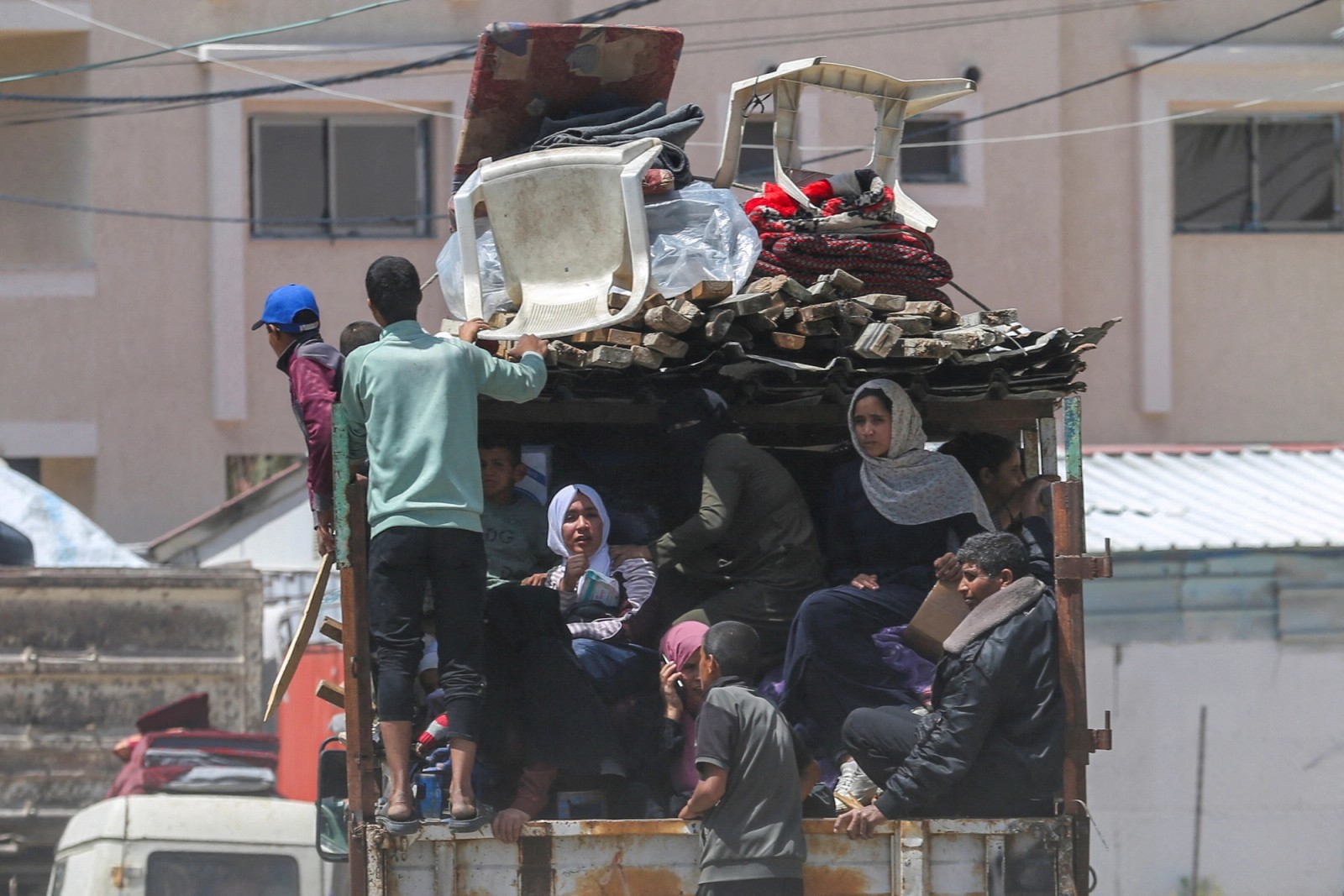 آوارگان فلسطینی در حال گریختن از رفح، جنوب نوار غزه، ۱۷ اردیبهشت