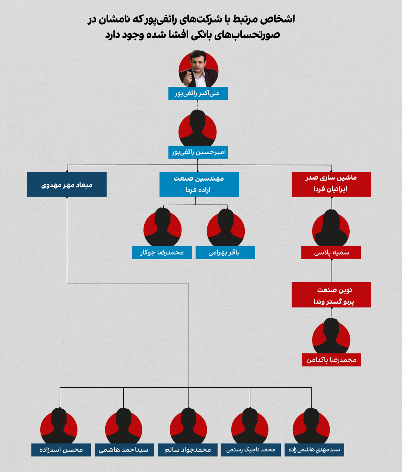 محمدرضا پاکدامن: او رییس هیات مدیره شرکت «نوین صنعت پرتو گستر وندا» است؛شرکتی که یکی از سهامداران آن سمیه پلاسی است. سمیه پلاسی در زمان تاسیس شرکت «ماشین‌سازی صدر ایرانیان فردا»، یکی از شرکت‌های برادر علی‌اکبر رائفی‌پور به عنوان مدیرعامل آن معرفی شده بود.