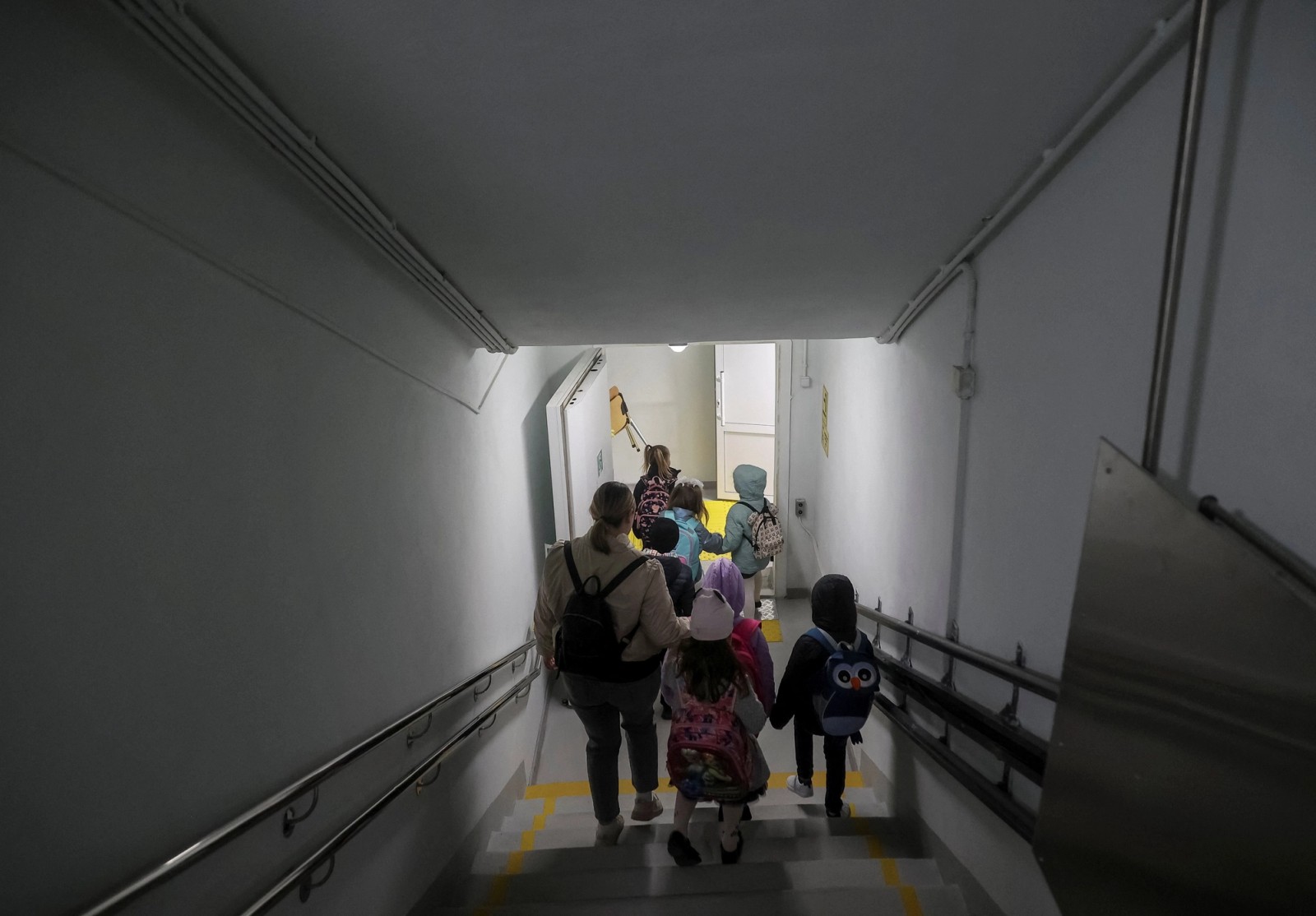 کودکان اوکراینی در مدرسه‌ای زیرزمینی، خارکیف، ۲۴ اردیبهشت