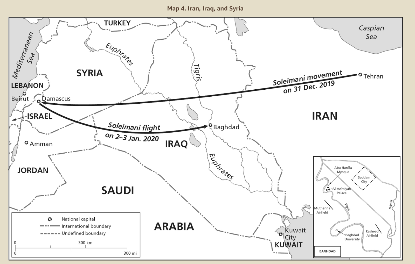 نقشه شماره ۴: زمان و مسیر پرواز سلیمانی در زمان حمله