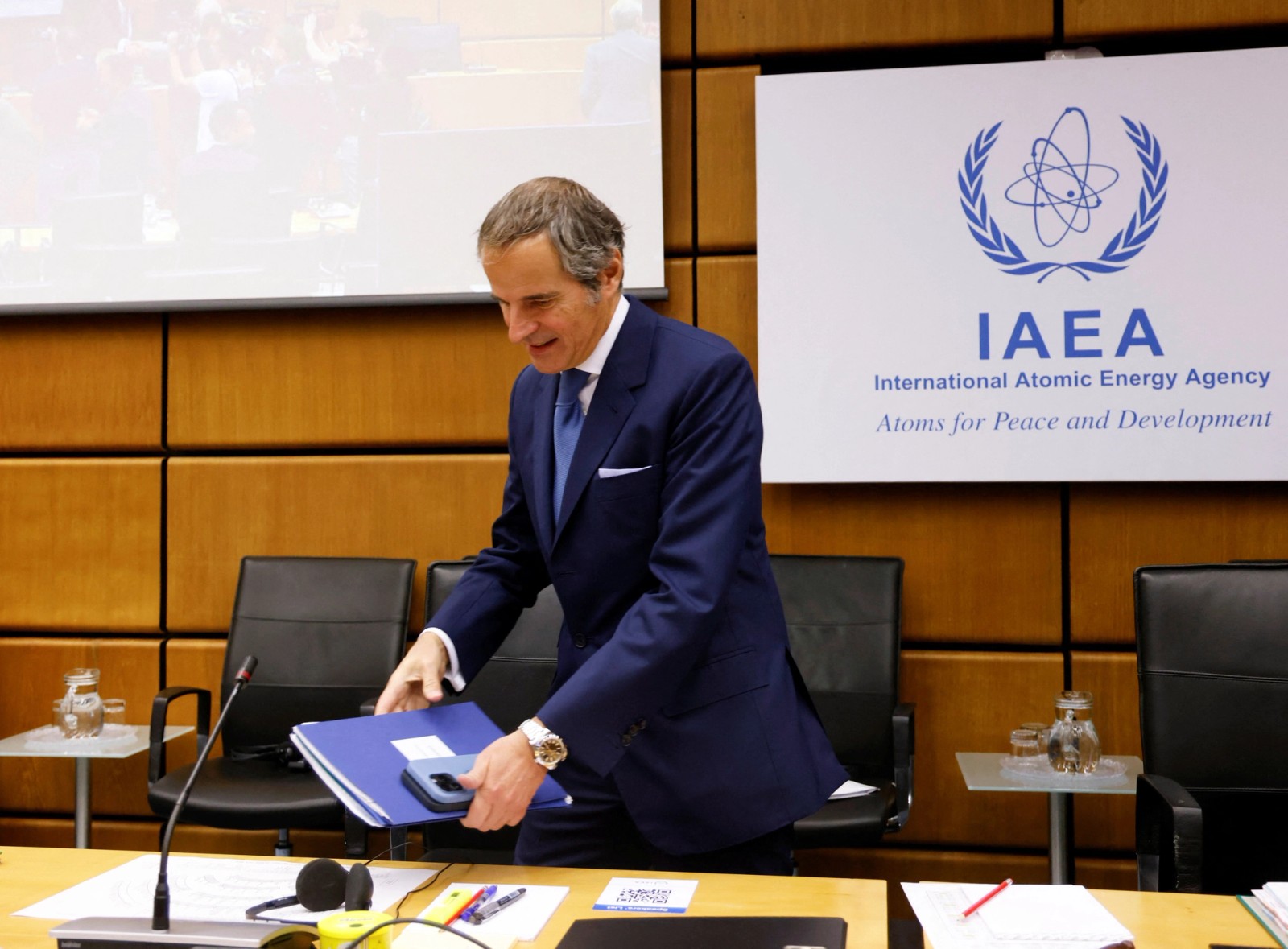 مدیرکل آژانس در یک نشست خبری هم حضور یافت و درباره پرونده ایران گفت: «شرایط نسبت به سال ۲۰۱۵ میلادی که در آن زمان آژانس درباره تعداد سانتریفیوژها و نوع آن‌ها اطلاع داشت، متفاوت شده است.»