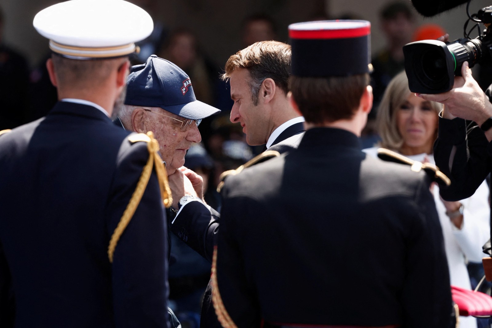 پیش از سخنان بایدن، امانوئل مکرون، رییس جمهوری فرانسه به کهنه‌سربازان آمریکایی گفت: «شما به این‌جا آمدید زیرا جهان آزاد به تک تک شما نیاز داشت و شما پاسخ دادید.»