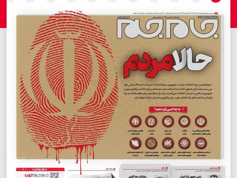 روزنامه جامجم، وابسته به صداوسیمای جمهوری اسلامی، در گزارشی مرتبط با انتخابات ریاستجمهوری، عکسی از یک اثر انگشت خونین منتشر کرد