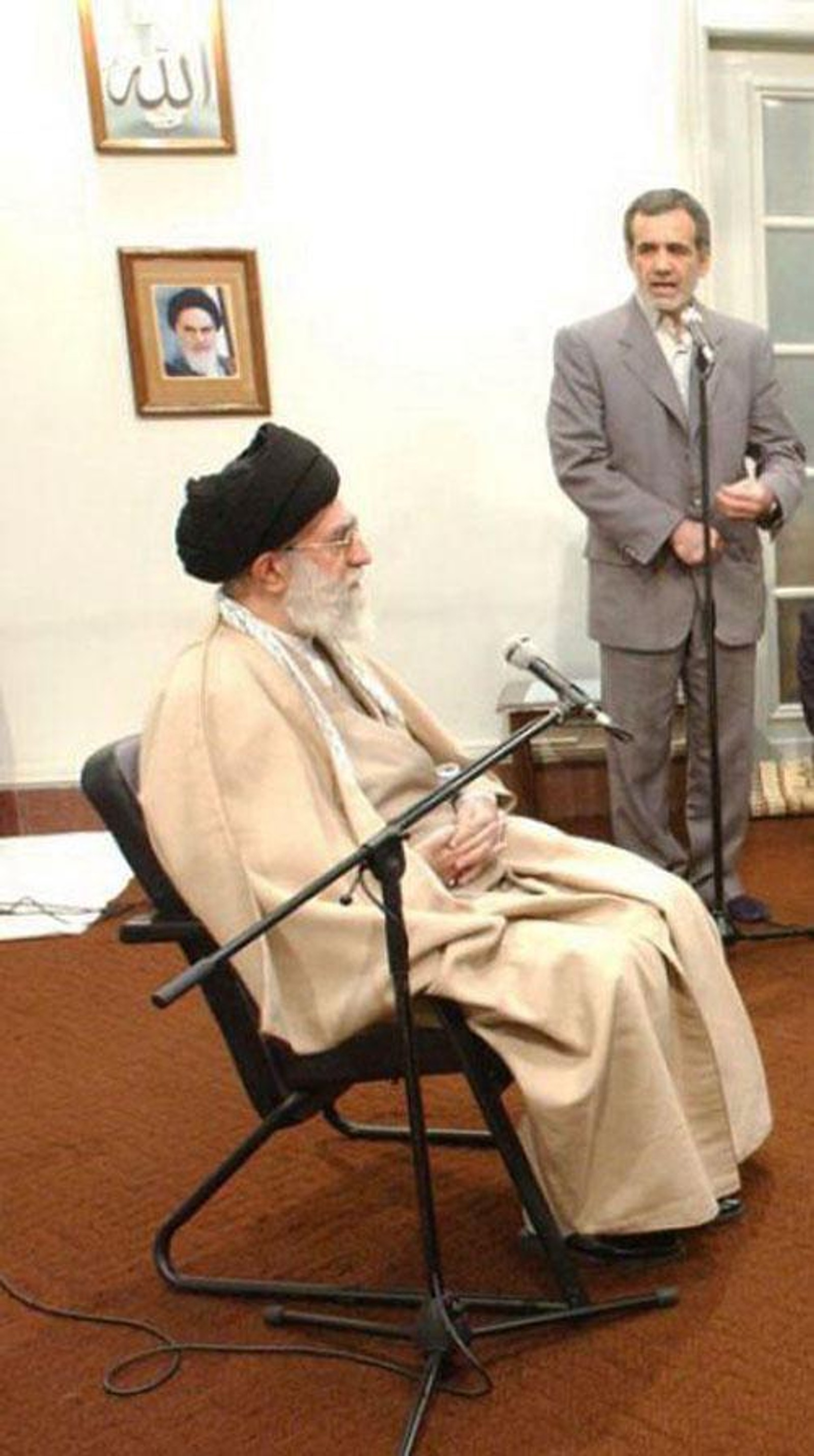 پزشکیان مثل سه نامزد دیگر نیست که تجربه همکاری یا دریافت حکم مستقیم از خامنه‌ای را داشته باشد اما در سخنرانی‌ها و برنامه‌های تبلیغاتی‌اش صراحتا به «سرسپردگی» به خامنه‌ای اذعان کرده و گفته است در صورت پیروزی در انتخابات ریاست‌جمهوری، نظرات رهبر جمهوری اسلامی را اجرا خواهد کرد.