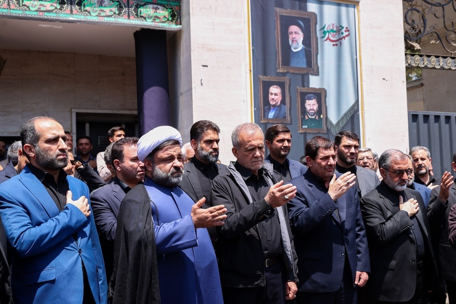 ظهر ۲۵ تیر ماه، مصادف با روز تاسوعا، پزشکیان به هیات نهاد ریاست‌جمهوری رفت. او زیر تصاویری از ابراهیم رئیسی و حسین امیرعبداللهیان، رییس‌جمهوری و وزیر امور خارجه کشته شده در سقوط هلی‌کوپتر، در مقابل نهاد ریاست‌جمهوری در دسته این نهاد شرکت کرد.