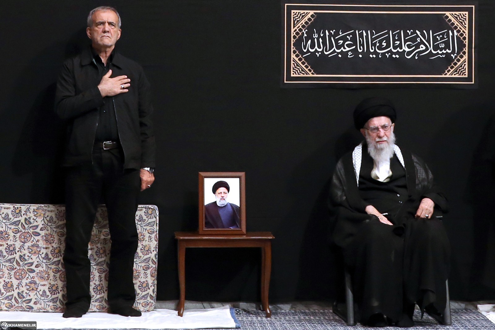 ۲۲ تیر، پزشکیان به «حسینیه امام خمینی»، متعلق به علی خامنه‌ای رفت و در مراسم عزاداری برپا شده از سوی رهبر جمهوری اسلامی برای امام سوم شیعیان شرکت کرد.