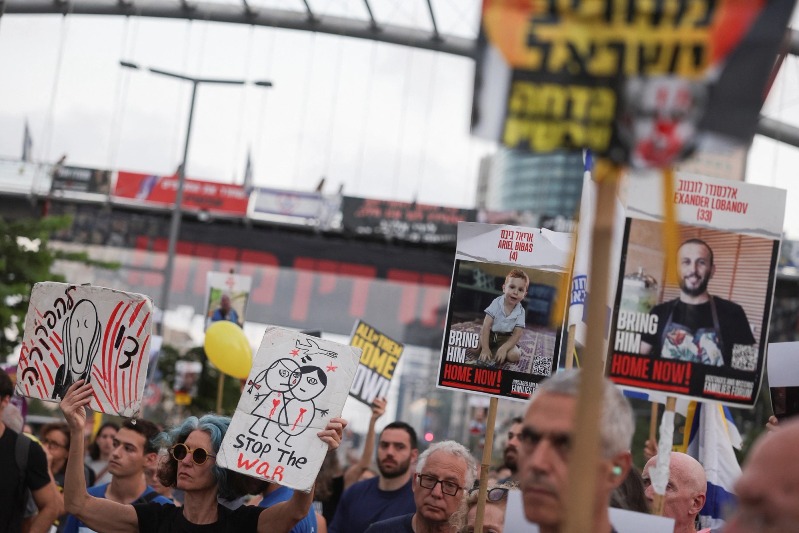 تظاهرات برای آزادی گروگان‌های اسرائیلی در بند حماس، تل‌آویو، ۲۵ تیر