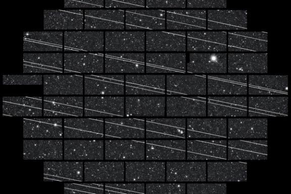 تلسکوپ سیتیایاو (CTIO) در شیلی، با نوردهی ۳۳۳ ثانیهای، حداقل ۱۹ خط درخشان از رد ماهوارههای استارلینک را در یک تصویر ثبت کرده است.