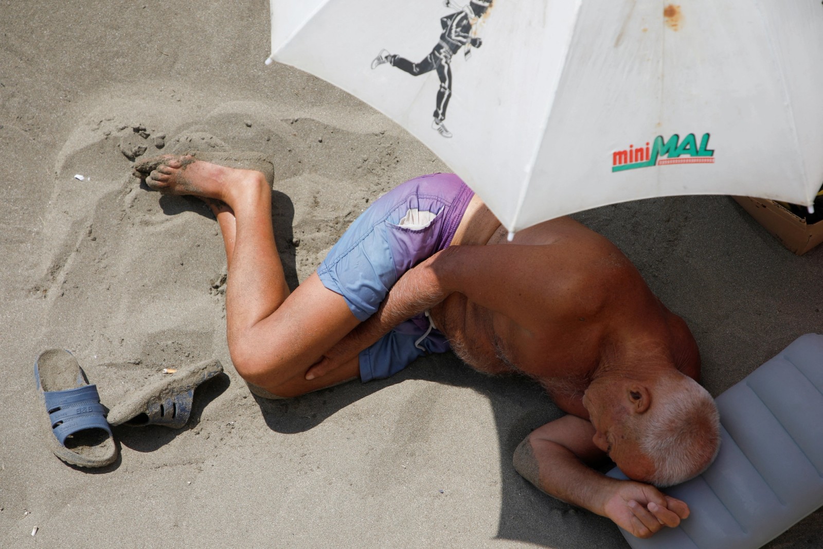 استراحت یک مرد در سواحل مونته‌نگرو به دنبال گرمای کم‌سابقه ۴۰ درجه سانتی‌گرادی در این کشور، ۲۳ مرداد