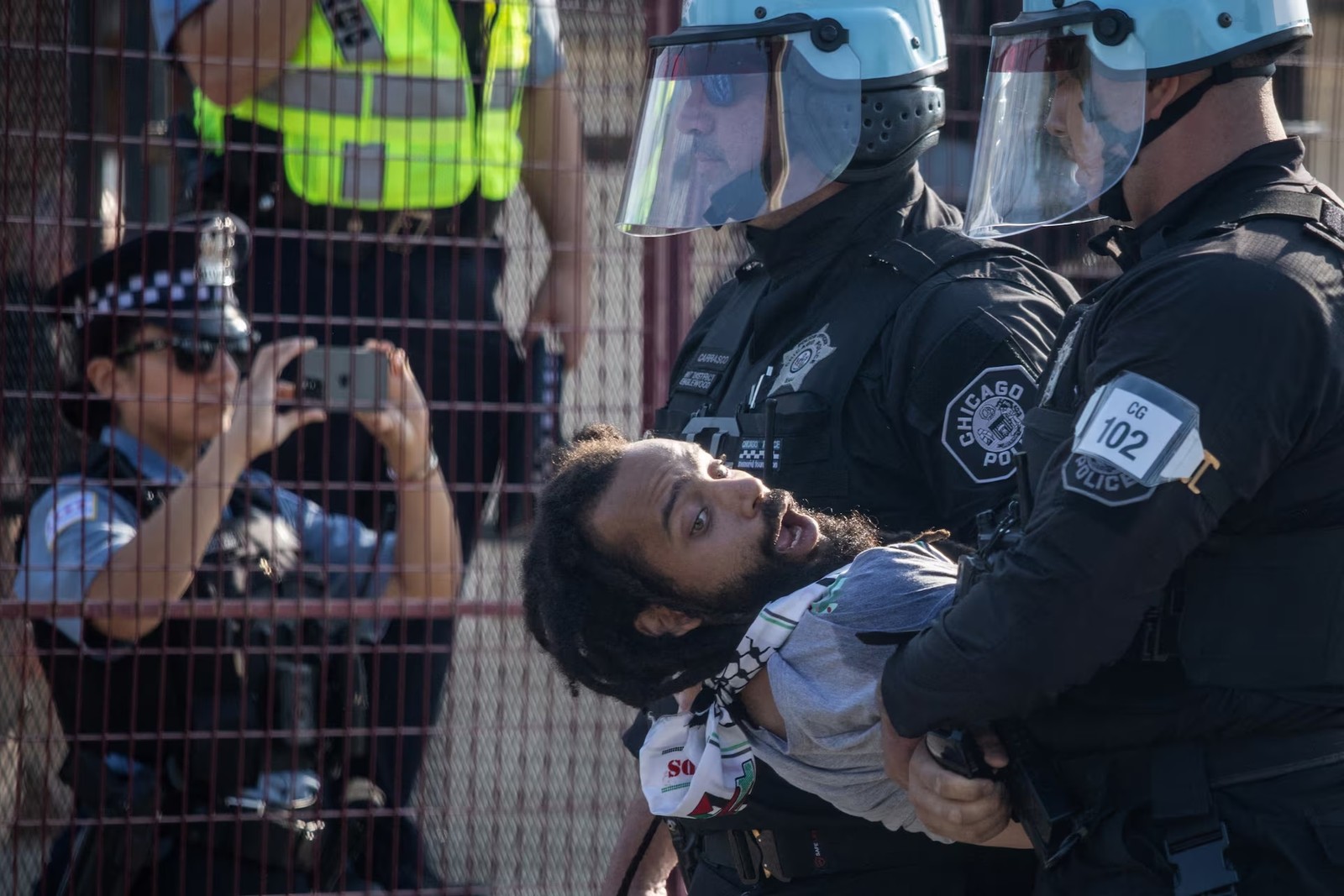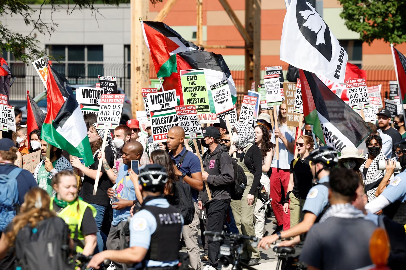 در حالی که دموکرات‌ها برای کنوانسیون ملی خود گرد هم آمده بودند، هزاران نفر در پارکی در همان نزدیکی جمع شدند تا به حمایت نظامی دولت بایدن از حمله اسرائیل به غزه اعتراض کنند.