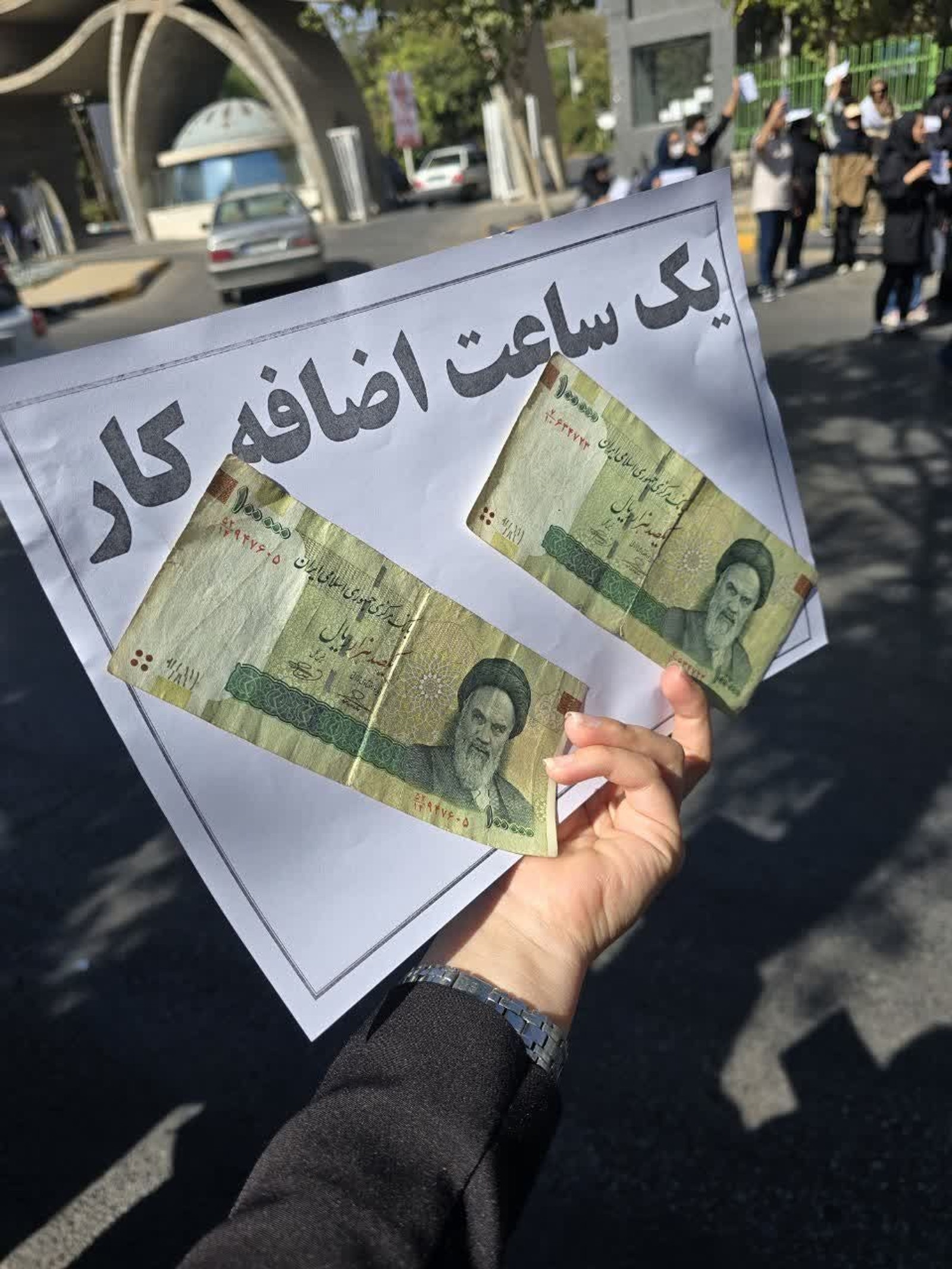 آن‌ها در تجمع خود شعارهایی از جمله «اضافه‌کار بیست تومن، خجالت خجالت» سردادند.