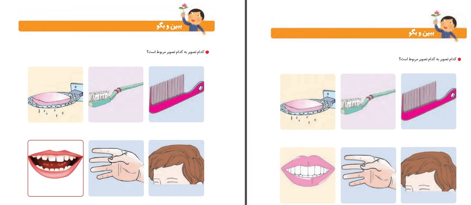 همچنین در صفحه ۲۲ این کتاب، از دانش‌آموزان خواسته شده «خوراکی‌هایی» را که برای زنگ تفریح همراه آورده‌اند دسته بندی کنند.
