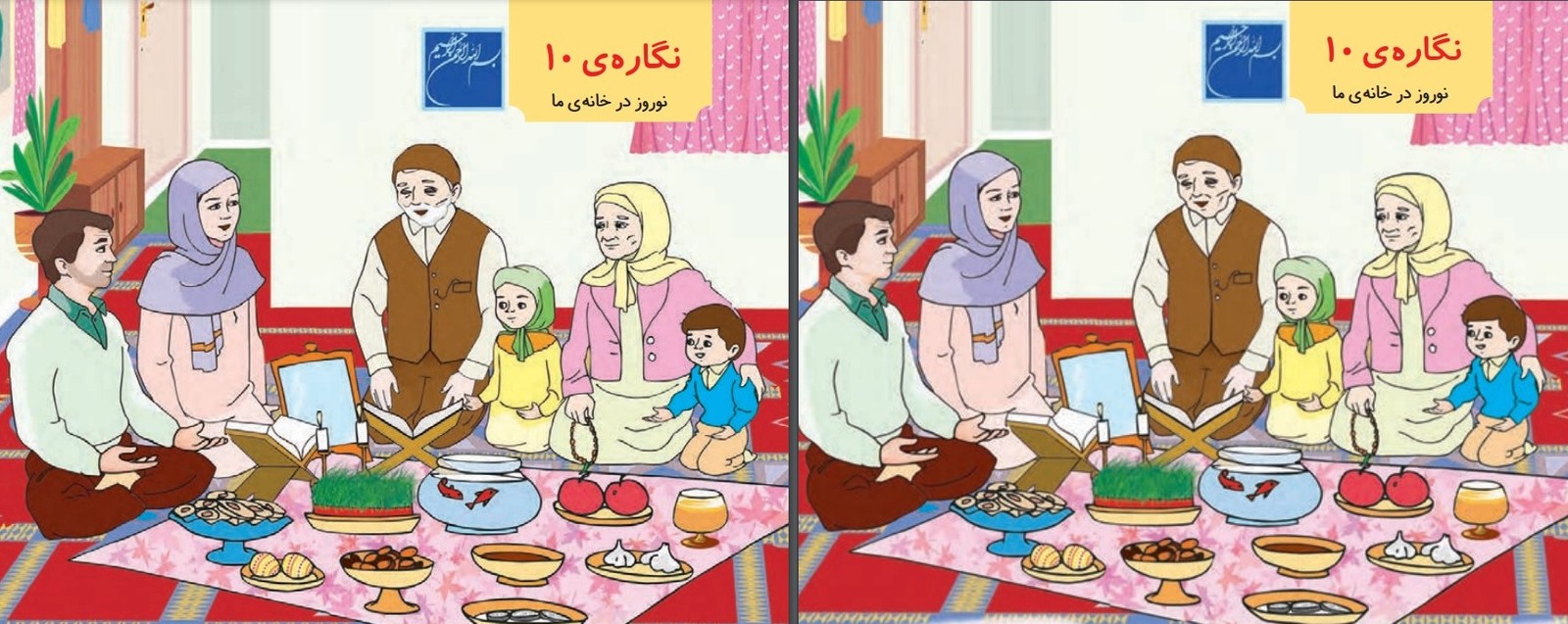 در صفحه شش این کتاب، تصویر لب و دهان زنی که تا سال ۱۳۹۸ در این کتاب بود، تغییر داده شده است. در تصویرسازی صفحه ۱۱ هم برای پدر خانواده ریش کشیده شده است.