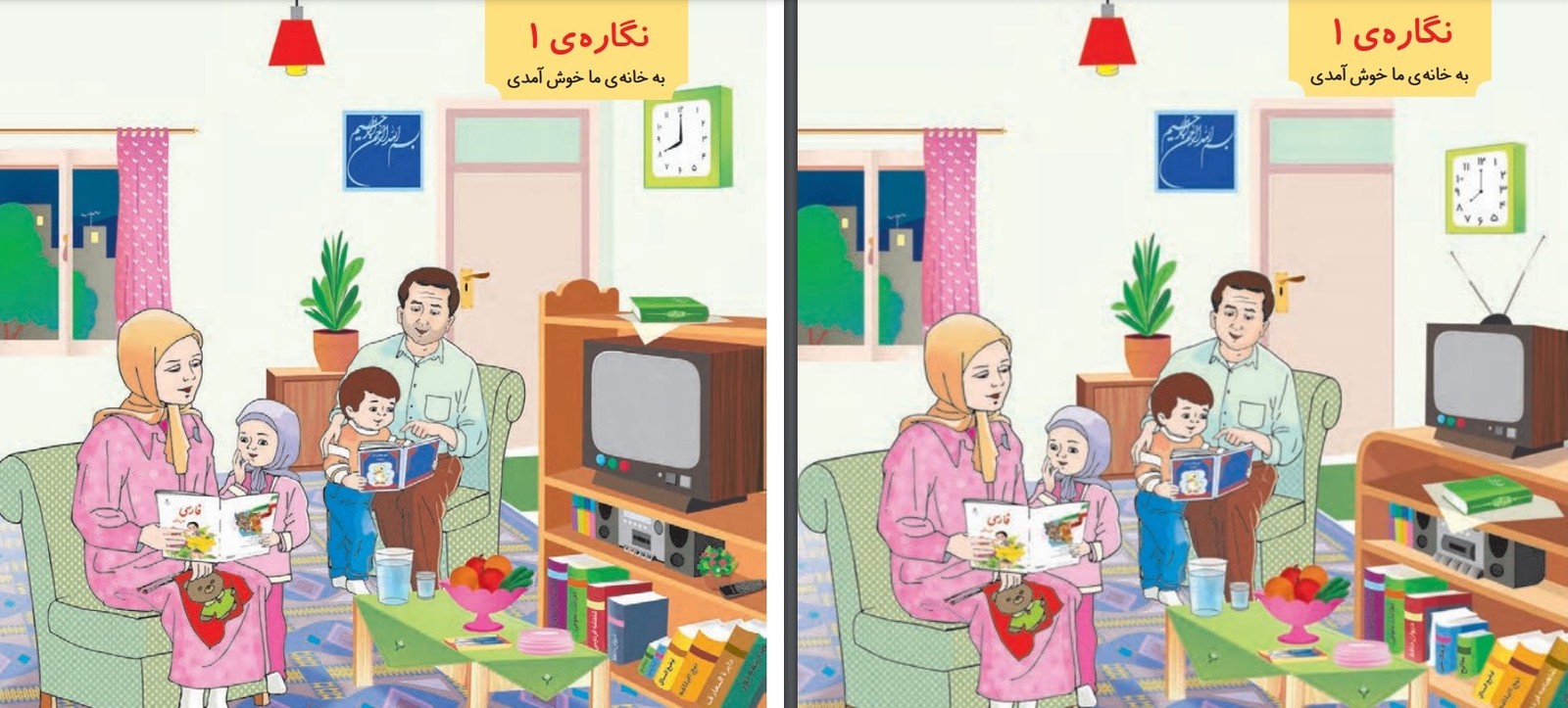 دانش‌آموزان پایه اول ابتدایی از هفته آینده باید یک‌سال تحصیلی را با پنج کتاب «آموزش قرآن»، «فارسی»، «ریاضی»، «علوم تجربی» و «نگارش فارسی» بگذرانند. کتاب‌های درسی که از دسترس تبلیغات ایدئولوژیک جمهوری اسلامی دور نمانده است، حتی تصویرسازی‌های این کتاب‌ها.